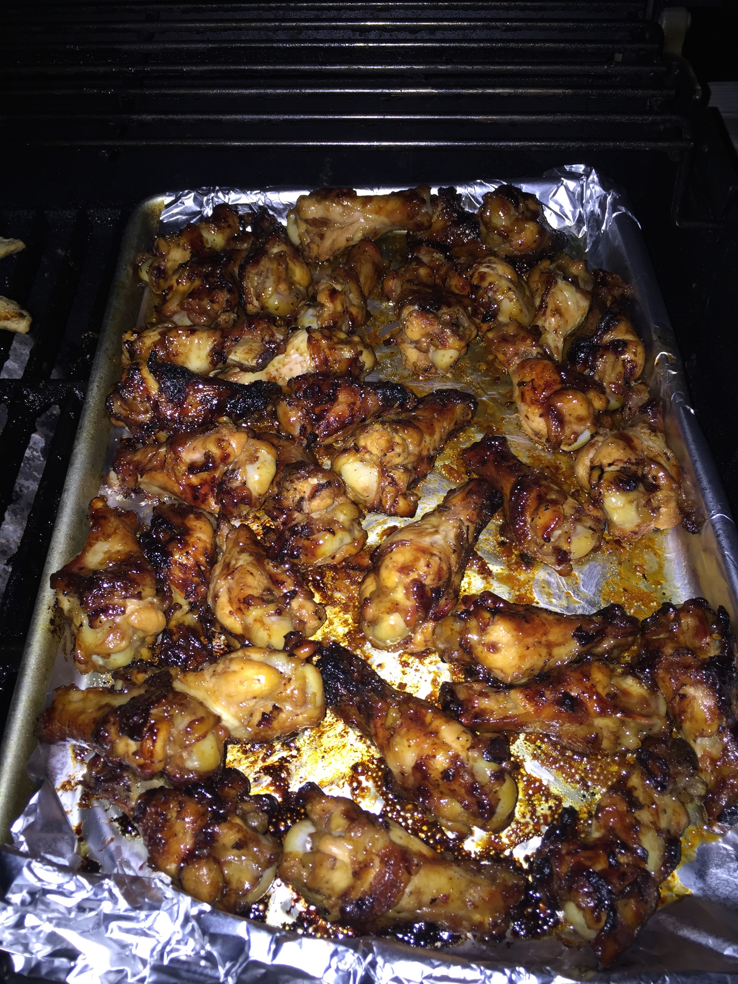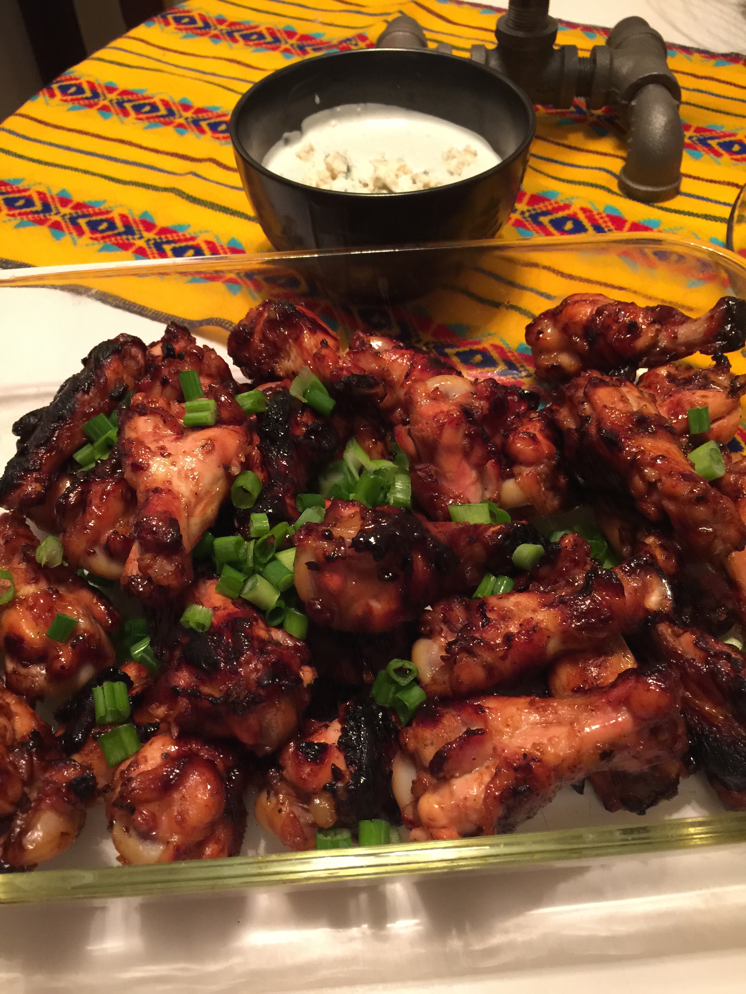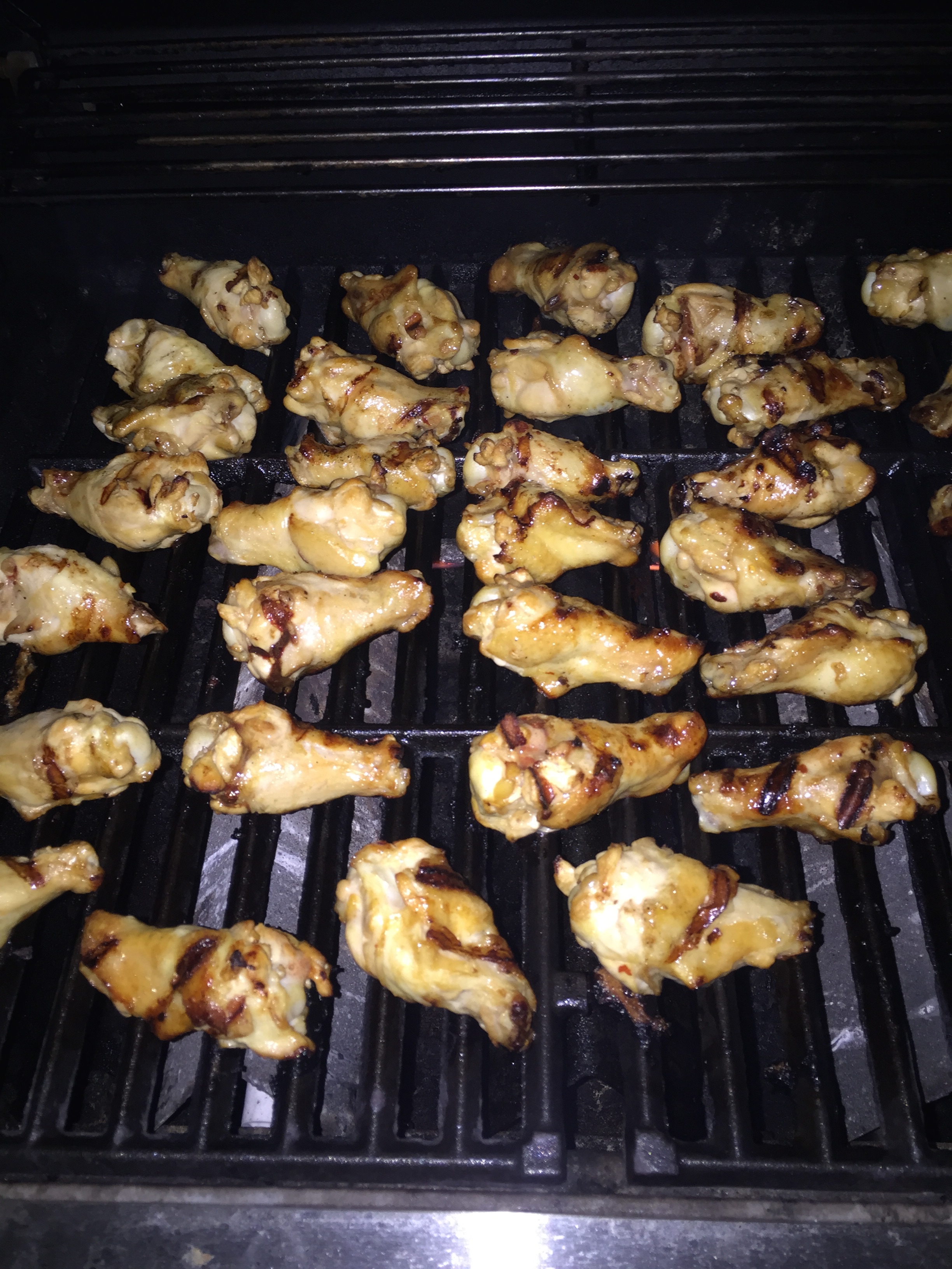 There is something about grilled meat and football that just works. Throw in some good beer and good friends and you’ve got a large night in the works. I choose the grill for this recipe to get a nice smoky flavor and get some crispy char as the fat on the wings rendered. And man, was it on point!